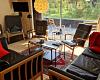 Vom Wohnzimmer Ausgang auf eine Holzterrasse ausgerichtet in südliche und eine westlich ausgerichtete, überdachte Terrasse.