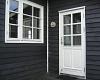 Eingang an der Ostseite mit Platz für Überzeug und Schuhe. Kleiner Holzofen und Waschmaschine.