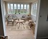 Neuer Wintergarten von 2024 mit Ausgang auf die Terrasse, windgeschützt, mit Gartenmöbeln.
