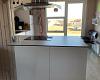 Neue Küchenabteilung von 2021 mit u.a. Nespresso-Maschine, Spülmaschine, Mikrowelle, Kühl- Gefrierschrank sowie kleinem Essplatz mit schöner Aussicht über das Ferienhausgebiet und den Flade See.