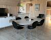 In offener Verbindung zur Küche gibt es ein gemütliches, schönes geräumiges Wohnzimmer, mit Esstisch, Holzofen, Schaukelstuhl und Sofaecke, dänischem und deutschem TV und Internet.