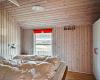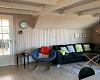 Das Wohnzimmer hat ein grosses Panoramafenster mit Ausgang auf eine nach Westen liegende, geschlossene Terrasse mit schönem Blick zu den Dünen der Nordsee.