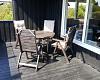 Zwischen Haus und Anbau bildet ein gefliester, windgeschützter Hof ein herrlich privates Plätzchen zum Entspannen in der Sonne.