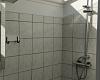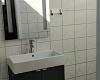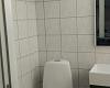 Kleines Bad mit WC, Handwaschbecken und Dusche.