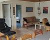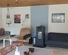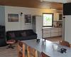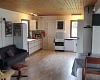 Offene Küche in Verbindung zu einer geräumigen Stube mit Eßtisch, Sofagruppe und Pelletsofen.