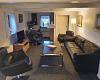 Wohnstube mit eingebauten alten Holzofen, Essplatz, Ledersofa, Lehnstuhl und TV mit Chromecast, deutschem Parabol und drahtlosem Internet.