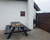 Östlich gelegener, kleiner, geschlossener Garten mit Gartenmöbeln