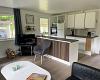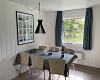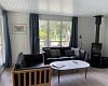 Wohnzimmer mit Sofagruppe, Smart-TV, Holzofen, Internet, Radio, Essplatz, ganz neuer Küche mit u.a. Mikrowelle, Spülmaschine, Kühlschrank mit kleinem Gefrierfach.