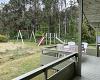 Kinderfreundlich: Spielhaus, Sandkasten und Rutschbahn.