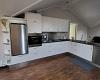Gepflegte Küchenabteilung mit u.a. Spülmaschine, Kühlschrank, Ofen und Cerankochfeld.