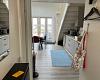 Det flotte, nye køkken fra 2025 er fuldt udstyret med opvaskemaskine, kogeplade, ovn, mikroovn og køle-fryseskab – alt sammen i åben forbindelse med den hyggelige stue, som har TV og spiseplads. Fra stuen og den sydvendte terrasse med havemøbler kan du nyde den skønne udsigt til Agger Havn og det pulserende liv ved vandet.