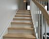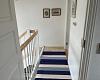 En ny trappe fører op til første sal, hvor du finder to yderligere soveværelser: ét med to enkeltsenge og skab, og ét med en bred enkeltseng – perfekte til familien eller vennerne.