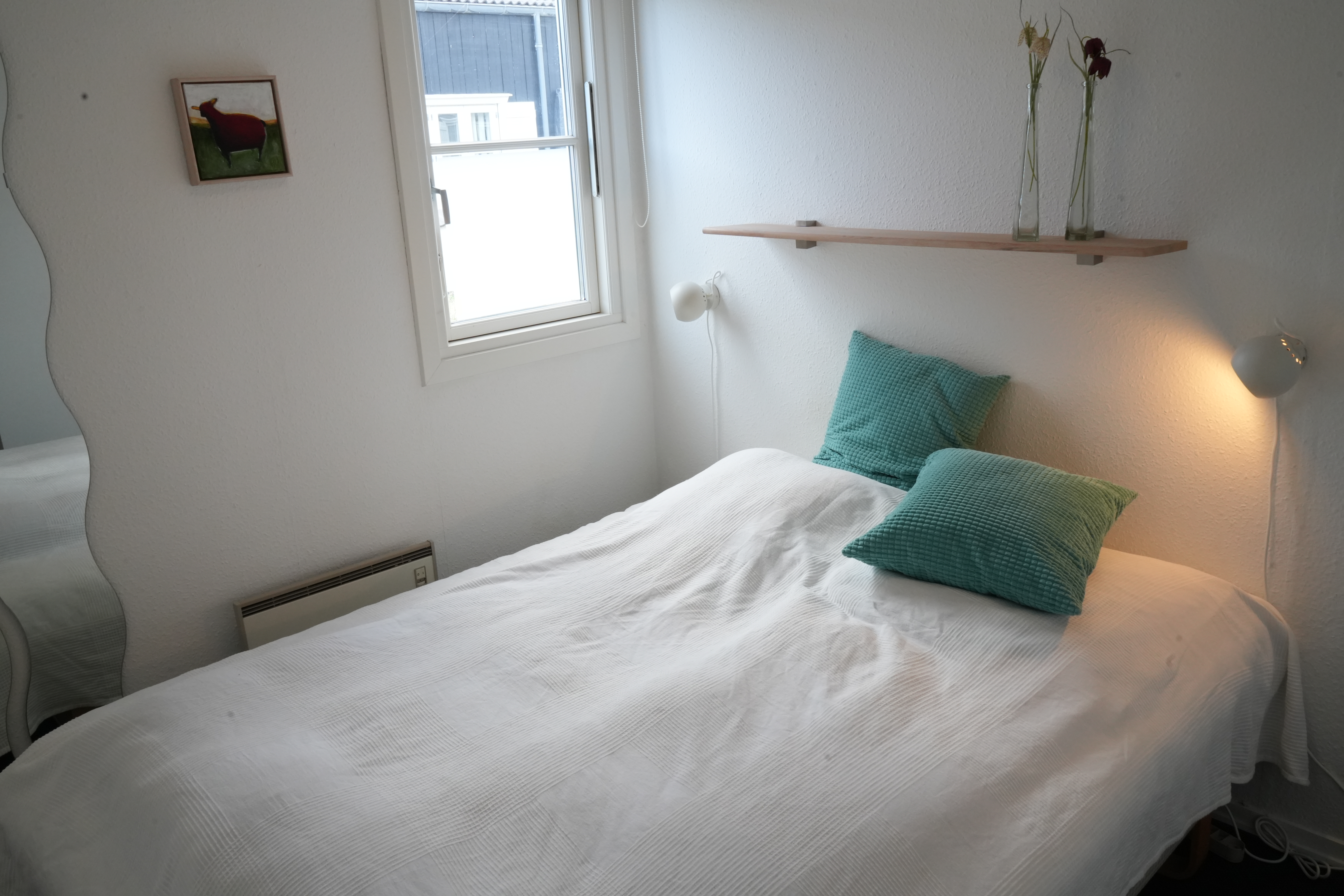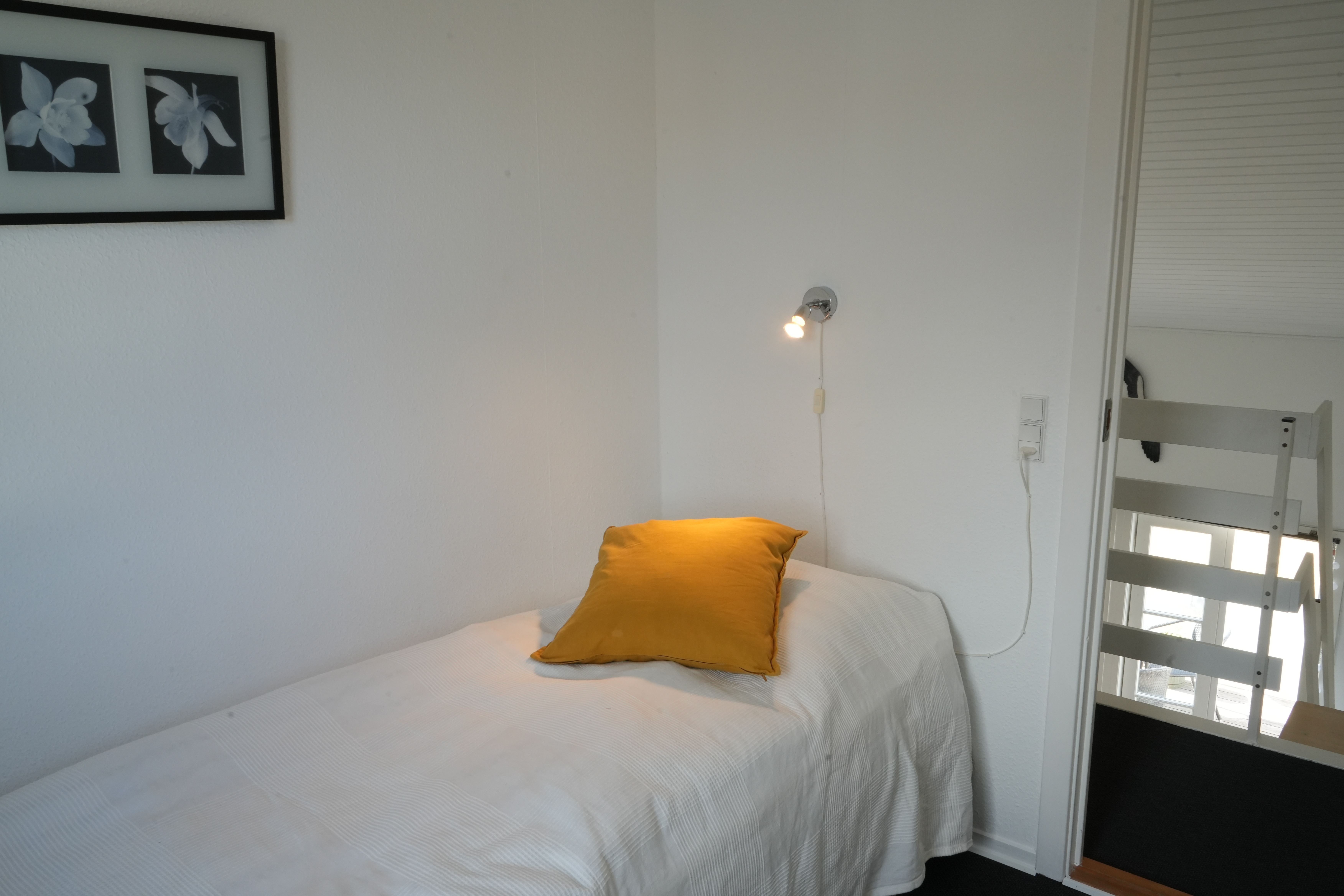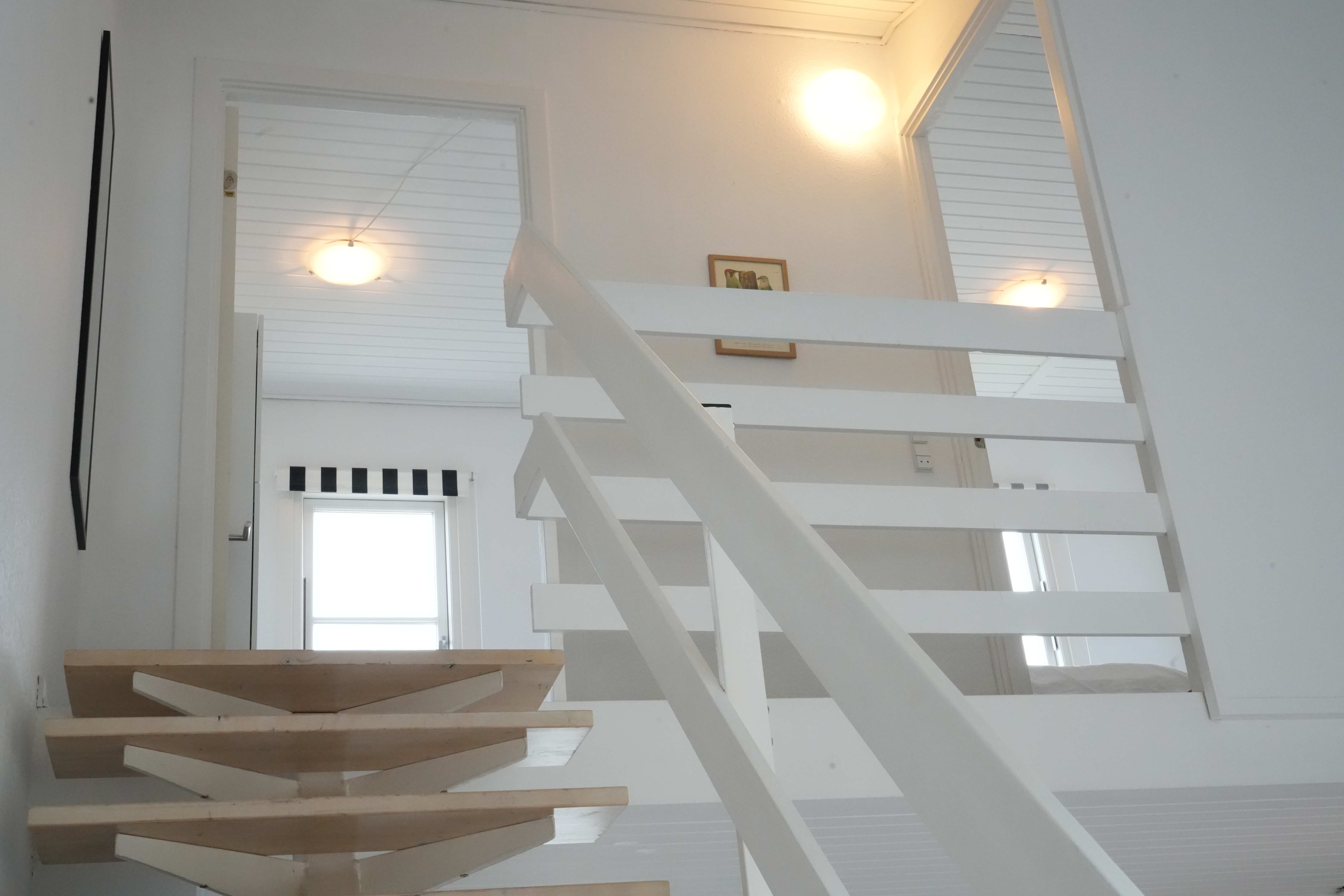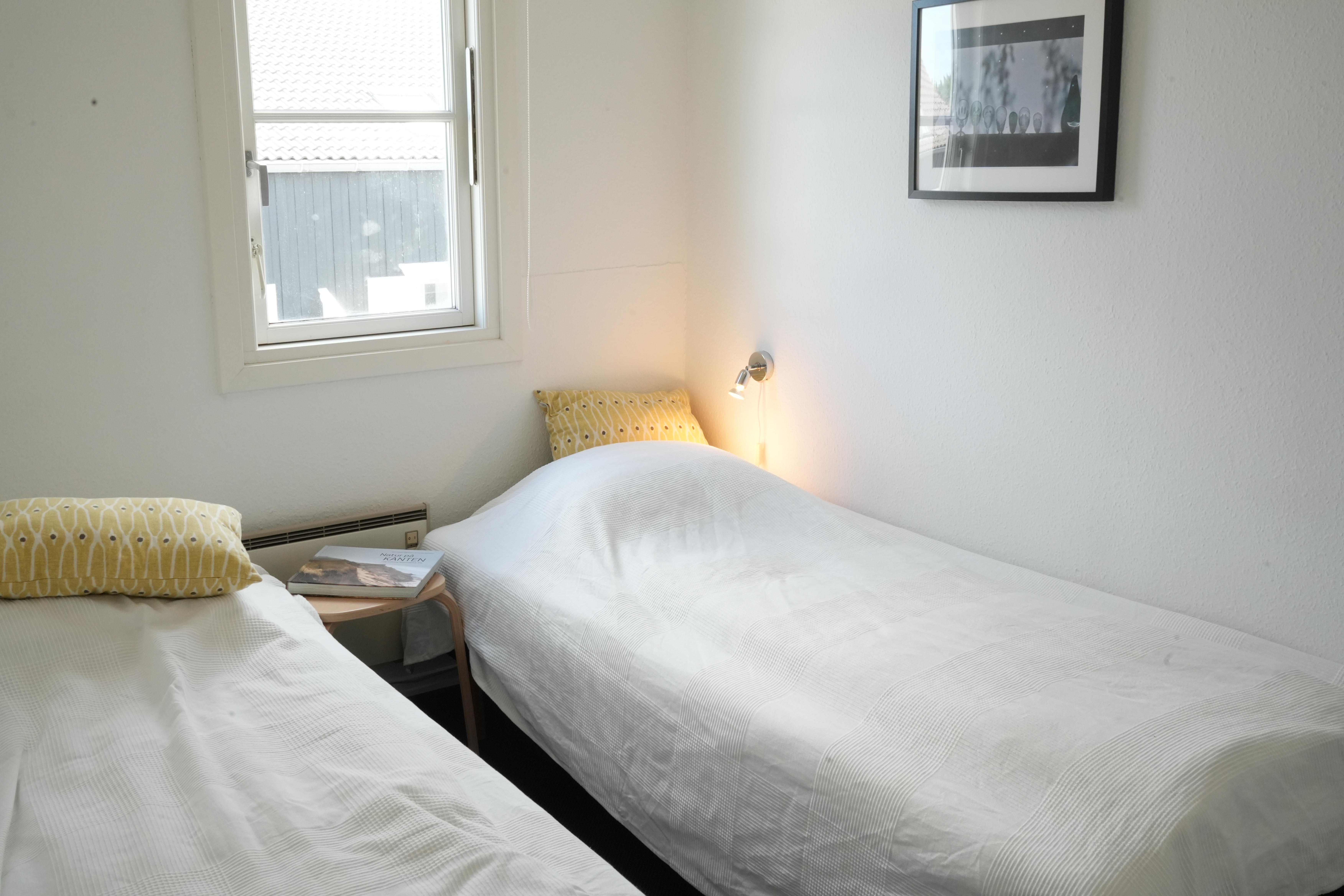 På første sal finder du to soveværelser – det ene med to enkeltsenge og det andet med én enkeltseng.