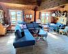 Hjørnesofa, hyggekrog med bænk, bord og stole, brændeovn, smart TV m. indbygget chromecast, Internet og tysk parabol.