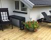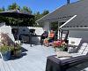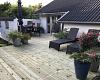 Fra stuen udgang til skøn sydvendt sol terrasse med havemøbler, liggestole og grill.