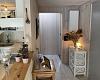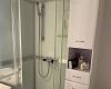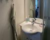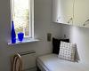 Lille badeværelse med WC, håndvask og bruseniche