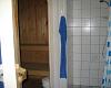 Pænt badeværelse m. WC, håndvask i skabsarrangement, bruseniche, vaskemaskine og sauna.