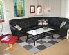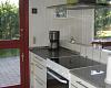 Nyt køkken i åbenforbindelse m. spiseafdeling, stor rummelig stue m. læder hjørnesofa, læder lænestol, brændeovn, DK TV, tysk parabol og Internet.