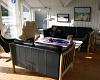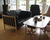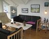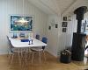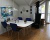 Hyggelig TV stue m. brændeovn, sofagruppe, lænestole og alkove. Spiseplads i åben forbindelse med pænt, lyst og funktionelt køkken.