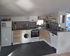 Praktisk køkkenafdeling med bla. opvaskemaskine, vaskemaskine og køle- fryseskab.
