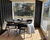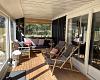 Udgang fra stuen til dejlig sydvendt udestue med kurvemøbel sæt og spiseplads.