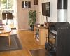 Køkkenet er i åben forbindelse m. spisestue og TV-stue m. sofagruppe, brændeovn, DK TV og tysk parabol og Internet .Fra stuen udgang til dejlig udestue m. god spiseplads, sofa og lænestole. Udestuen kan i kølige perioden opvarmes m. gasovn.