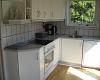 Pænt lyst køkken m. bla. opvaskemaskine og mikroovn. Udgang fra køkkenet til dejlig terrasse mod syd-øst m. bord/bænk sæt.