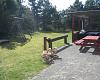Børnevenlig: Legesager, barneseng, barnestol, gynger og sandkasse.