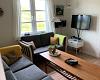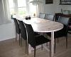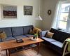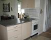 Køkken åben til kip og i åben forbindelse m. spisestue, opholdsstue m. brændeovn, sofagruppe, TV, tysk parabol, Internet.