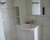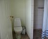 Pænt badeværelse m. håndvask, WC og bruseniche.