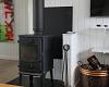 Huset opvarmes med energisparende varmepumpe, el og brændeovn.