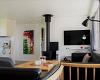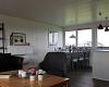Pæn stue m. spiseplads og 6 stole, lille brændeovn, sofa og 2 fletstole, Internet, TV kan ses via crome cast og få danske og tyske kanaler tilgængelig fra Altiboks.
